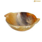 Mythrojan Hand Crafted Small Serving Natural Ox Horn Bowl with Handle - Polished Finish