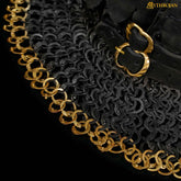 Mythrojan RIVETED CHAINMAIL STANDARD “The Black Knight Gorget”: 9mm Flat Ring Round Rivets (Alt) with black suede padded lining and Solid Brass Edges– SIZE M