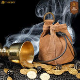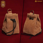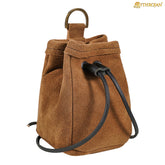 Mythrojan Medieval Drawstring Belt Bag, ideal for SCA LARP reenactment & Ren fair, Suede Leather, Brown, 5”×4”