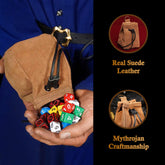 ⭐ PERFECT SIZE: Mythrojan’s 5” x 4” suede leather pouch is the perfect companion for any adventure. Sturdy, reliable, and easy to close, it will KEEP YOUR DICE, KEYS, AND ALL YOUR PRECIOUS BELONGINGS safe during your epic weekends! Whatever your favorite universe or character, its unique look, and adaptable shape will prove more than useful in any event or even in your everyday life!