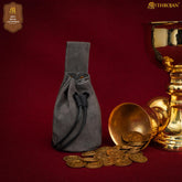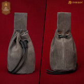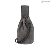Mythrojan Medieval Drawstring Belt Bag, Ideal for SCA LARP Reenactment & Ren Fair, Suede Leather, Grey 6”×5”