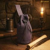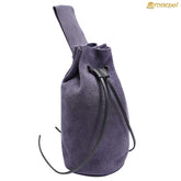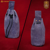 Mythrojan Medieval Drawstring Belt Bag, Ideal for SCA LARP Reenactment & Ren Fair, Suede Leather, Dark Blue, 8”×6.5”