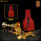 Mythrojan Medieval Drawstring Belt Bag, Ideal for SCA LARP Reenactment & Ren fair , Suede Leather , Cherry 6” ×5 ”