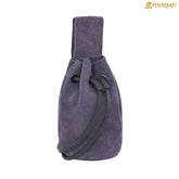 Mythrojan Medieval Drawstring Belt Bag, Ideal for SCA LARP Reenactment & Ren Fair, Suede Leather, Blue 6”×5”