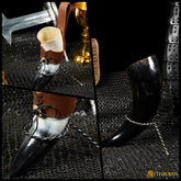 ★ This version of our Iron stand works for drinking horn sizes 250ml, 400ml, 500ml, up to about 650ml★ IDEAL FOR YOUR NEXT BANQUET: Have you ever tried to put down your medieval drinking horn while attending a banquet? This is the moment when you really wish you had a proper rack!