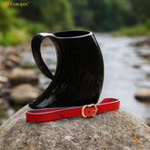 Keep your drinking horn securely at your side with this Medieval Leather Horn Strap Holder, handcrafted for authenticity and functionality. Made from 3 mm – 3.2 mm genuine leather, it ensures your horn stays safely fastened to your belt, leaving your hands free while you enjoy feasts, festivals, or battles in style.