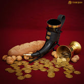 ⭐ IDEAL FOR AMAZING MEDIEVAL EVENTS, SCA, WEDDINGS, COSPLAY, or LARP! Is there anything better than sharing a good beer or a nice hydromel with good friends at a festive banquet or a memorable medieval wedding? ♦♦ Wherever your adventure is set, our beautiful drinking horn will hold up to all your feasts and banquets, from the simple battlefield encampment to the impressive tables of the mead hall of your warlord!