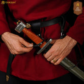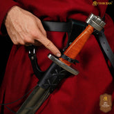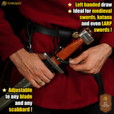⭐VERSATILE & IDEAL FOR MANY CHARACTER TYPES (Historical or Fantasy): Should you be a brave warrior or a fearless knight, an elegant damsel, or a skilled elven ranger, this Mythrojan 8”×8” (21.5cm×21.5cm) frog will be the perfect companion for all your adventures. Whatever your favourite universe or character, its authentic look and sturdy and reliable leather will make the difference! Ideal for Viking and Norman swords, medieval arming swords, longswords, and rapiers. It is worn on the left side by RIGHT-HANDED PEOPLE and the right side by LEFT-HANDED PEOPLE.