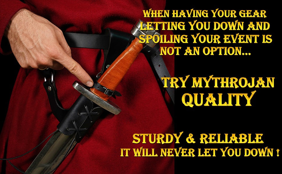 ⭐VERSATILE & IDEAL FOR MANY CHARACTER TYPES (Historical or Fantasy): Should you be a brave warrior or a fearless knight, an elegant damsel, or a skilled elven ranger, this Mythrojan 8”×8” (21.5cm×21.5cm) frog will be the perfect companion for all your adventures. Whatever your favourite universe or character, its authentic look and sturdy and reliable leather will make the difference! Ideal for Viking and Norman swords, medieval arming swords, longswords, and rapiers. It is worn on the left side by RIGHT-HANDED PEOPLE and the right side by LEFT-HANDED PEOPLE.