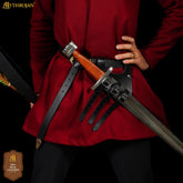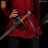 Mythrojan Renaissance Leather Sword Frog LARP Costume Accessory Rapier Knight Sword Belt - Black