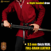 ⭐ VERSATILE & IDEAL FOR MANY CHARACTER TYPES (Historical or Fantasy): This Mythrojan 6”×5” (15.2cm×12.7cm) frog will be the perfect companion for all your adventures. Whatever your favorite universe or character, its authentic look and sturdy and reliable leather will make the difference! Ideal for Viking and Norman swords, LARP swords, medieval arming swords, longswords, and rapiers. It is worn on the left side by RIGHT-HANDED PEOPLE and the right side by LEFT-HANDED PEOPLE.