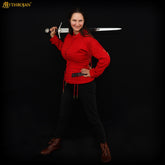 Equipped with black leather reinforcement tabs, perfectly positioned to securely fasten spaulders, pauldrons, or leg harnesses, ensuring stability and historical accuracy in your armor setup.