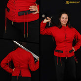 Features front, side, and sleeve lacing with brass-tipped cotton cords, allowing a custom, adjustable fit that enhances both mobility and authentic medieval appearance.