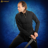 Features front, side, and sleeve lacing with brass-tipped cotton cords, allowing a custom, adjustable fit that enhances both mobility and authentic medieval appearance.