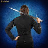 Equipped with black leather reinforcement tabs, perfectly positioned to securely fasten spaulders, pauldrons, or leg harnesses, ensuring stability and historical accuracy in your armor setup.
