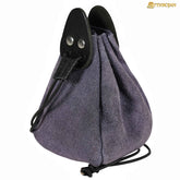 Mythrojan “Gold and Dice” Drawstring Pouch, ideal for SCA LARP reenactment & Ren fair-Suede Leather Pouch, Black and Dark Blue, 6