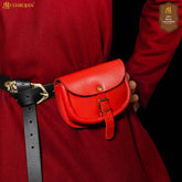 Mythrojan “ The Medieval Burglar ” Leather Bag, Ideal for SCA LARP Reenactment & Ren fair - Full Grain Leather, Red 4.7 ” ×6.2 ”
