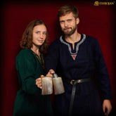 Mythrojan Black Viking Horn Ale Mug, Medieval Knight Renaissance Mead Ale Larp Cosplay Horn Tankard Set of 2