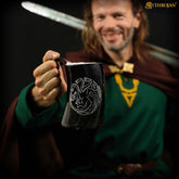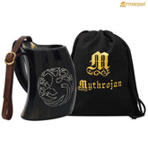 Mythrojan Tumbler Viking Drinking Cup with Handle & Medieval Buckle Renaissance with Leather Strap - Dragon