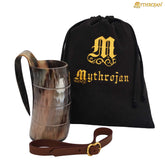 Mythrojan Viking Drinking Tankard with Medieval Buckle Leather Strap Wine Beer Mead Mug 600 ML - Polished Finish