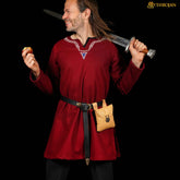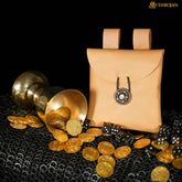 Mythrojan Leather Belt Bag, Ideal for SCA LARP Reenactment & Ren fair, Full Grain Leather, Natural , 5 .5”× 5.1 ”