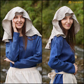 This veil pairs perfectly with peasant, pilgrim, or noble costumes, adding an elegant layer of modesty and historical authenticity. Its versatile style complements a range of medieval outfits, serving as both head covering and sun protection.
