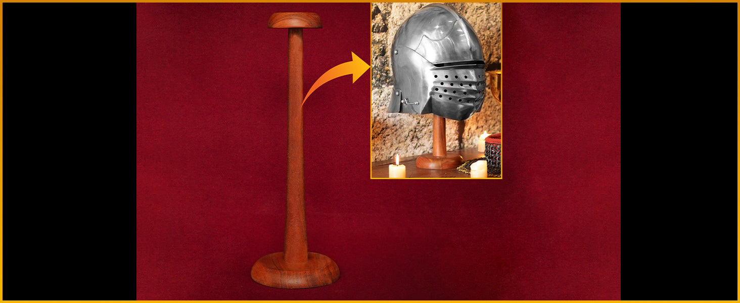 Mythrojan 14.5 Inch SOLID WOOD HAT DISPLAY STAND Sturdy Wooden Display Stand for Medieval Renaissance Cosplay Halloween Pin up Retro Hats - NATURAL