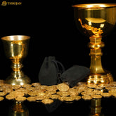 Mythrojan 20 Solid Brass LARP Gold Coins and Suede Leather Trinket Bag : LARP PIRATE treasure pouch purse
