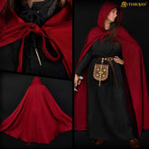 Designed with a large, practical hood that offers protection from the sun, wind, or light rain while adding a mystical, wizardly or witchy flair to your medieval or fantasy outfit.