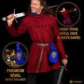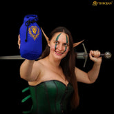 Mythrojan “For the Horde” Wool Drawstring Belt Pouch: Costume Accessory Coin Purse , Royal Blue , 8” × 6.5”
