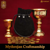 Mythrojan “ Gold and Dice ” Medieval Drawstring Bag, Ideal for SCA LARP Reenactment & Ren fair Suede Leather Pouch, Black 9.2” ×7.2 ”