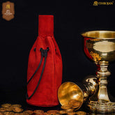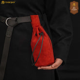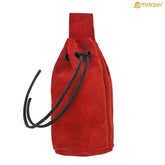Mythrojan Medieval Drawstring Belt Bag, Ideal for SCA LARP Reenactment & Ren Fair, Suede Leather, Cherry 8”×6.5”
