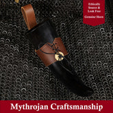 Mythrojan Drinking Horn with Leather Holder Authentic Medieval Inspired Viking Wine/Mead Mug (Brown, 400 ML)