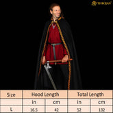 The attached hood adds a touch of mystery and fantasy flair perfect for witches, rangers, knights, or nobles. Beyond its striking silhouette, it also offers real protection against wind and chill, making it as practical as it is stylish for outdoor events and cool evenings.
