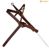 Mythrojan Geralt Back Scabbard, Ideal for LARP Cosplay and Medieval Events, Full Grain Leather, Single Sword, Brown
