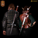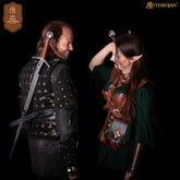 ⭐ HANDMADE FROM STURDY & ATTRACTIVE FULL-GRAIN LEATHER: We take great pride in the way our products are hand-cut and handcrafted using only the highest quality leather available. YOUR NEXT GERALT COSTUME DESERVES THE VERY BEST!⭐FORGET ABOUT THE POOR PERFORMANCES OF OTHER FAKE LEATHER BACK SCABBARDS! We are talking about REAL GENUINE LEATHER here! Our experience with the FILM INDUSTRY has forged our standards, and you can be sure that the quality of Mythrojan selected leather will ensure a LONG-LASTING LIFE and durability to your favourite scabbard…quality looking straight out of Kaer Morhen Armoury!