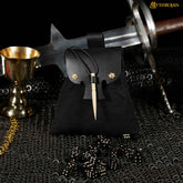 Mythrojan “Gold and Dice” Medieval Fantasy Belt Bag with Bone Needle Closure, Ideal for SCA LARP Reenactment & Ren fair, Black, 7”×7”