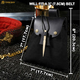 PERFECT SIZE: Mythrojan’s Medieval Fantasy Leather Pouch 7”×7” (17.7x17.7cm) is the perfect companion for any adventure. Sturdy and easy to close with a GENUINE BONE PIN, they will KEEP YOUR GOLD, DICE, KEYS, AND ALL YOUR PRECIOUS BELONGINGS, safe during your epic weekends. Whatever your favourite universe or character, its authentic look, and adaptable shape will prove more than useful in any event or even in your everyday life! The belt loop is ideal for belts up to 3” wide (7.5cm).