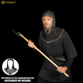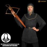 ⭐ This chainmail coif is a great functional piece of armor. Featuring 16 gauge mild steel and solid brass round rings interlocked in a 4-in-1 pattern and butted, this coif is ready for action. The high-quality sturdy constructions make this a great piece of equipment to wear for reenactments.