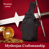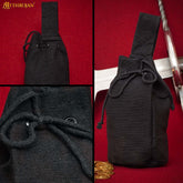 Mythrojan Medieval Drawstring Belt Bag, Ideal for SCA LARP Reenactment & Ren fair, Handwoven Canvas , Black , 8 ”× 6.5 ”