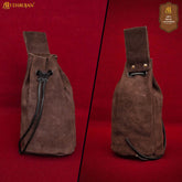 Mythrojan Medieval Drawstring Belt Bag, Ideal for SCA LARP Reenactment & Ren fair , Suede Leather , Brown 8” ×6.5 ”
