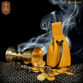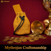 Mythrojan Medieval Drawstring Belt Bag, Ideal for SCA LARP Reenactment & Ren fair , Suede Leather , Gold 6” ×5 ”