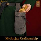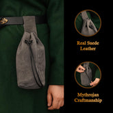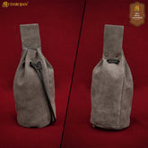 Mythrojan Medieval Drawstring Belt Bag, Ideal for SCA LARP Reenactment & Ren Fair, Suede Leather, Grey, 8”×6.5”