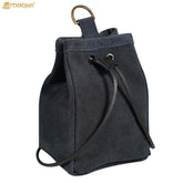 Mythrojan Medieval Drawstring Belt Bag, ideal for SCA LARP reenactment & Ren fair, Suede Leather, Midnight Navy Blue, 6.5”×4.5”