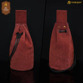 Mythrojan Medieval Drawstring Belt Bag, Ideal for SCA LARP Reenactment & Ren fair , Suede Leather , Wine Red 8” ×6.5 ”