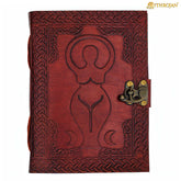 Mythrojan Medieval Goddess Leather Journal with Lock 5 x 7 inches Handmade Vintage Diary Notebook