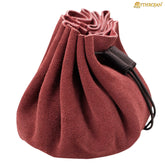 Mythrojan “ Gold and Dice ” Medieval Drawstring Bag, Ideal for SCA LARP Reenactment & Ren fair - Suede Leather Pouch, Wine Red 3.5"