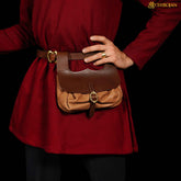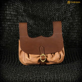 Mythrojan Medieval Belt Bag with Solid Brass Buckle , Ideal for Cosplay SCA LARP Reenactment & Ren fair, Full Grain Leather, Brown , 8.2 ” × 8.6”
