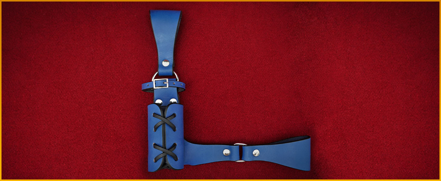 Mythrojan Medieval Leather Sword Frog Universal Rapier Broadsword and Cutlass - Blue - 8" X 8"