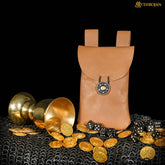 Mythrojan Leather Belt Bag, Ideal for SCA LARP Reenactment & Ren fair, Full Grain Leather, Brown , 7.2 ”× 4.7 ”